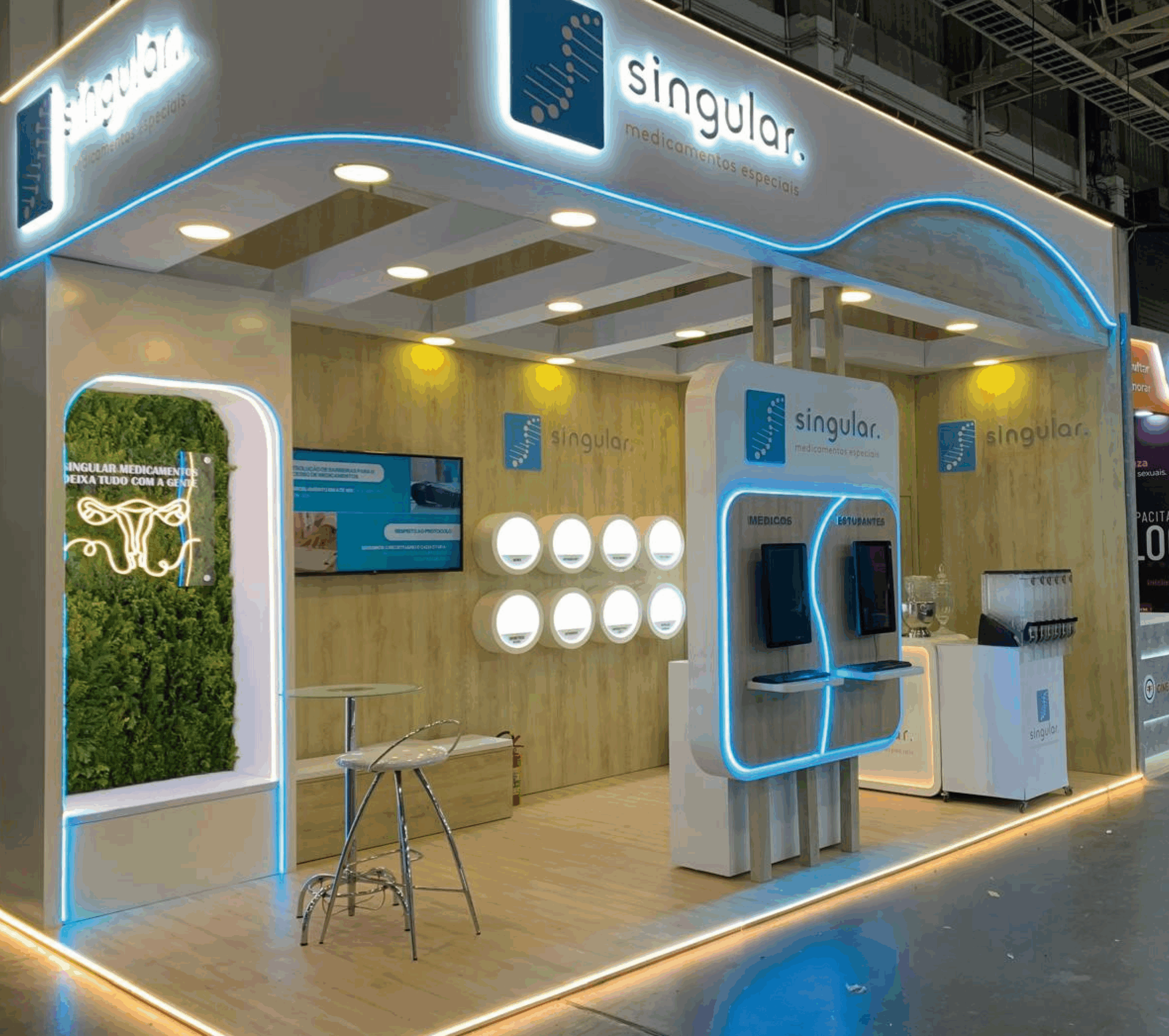 Desenvolvemos e construímos o stand, e entregamos com buffet e café gourmet, rádios para comunicação da equipe da Singular e ainda desenvolvemos um sistema para cadastro dos visitantes, com leitura de QR code e backoffice com acesso aos dados em tempo real.